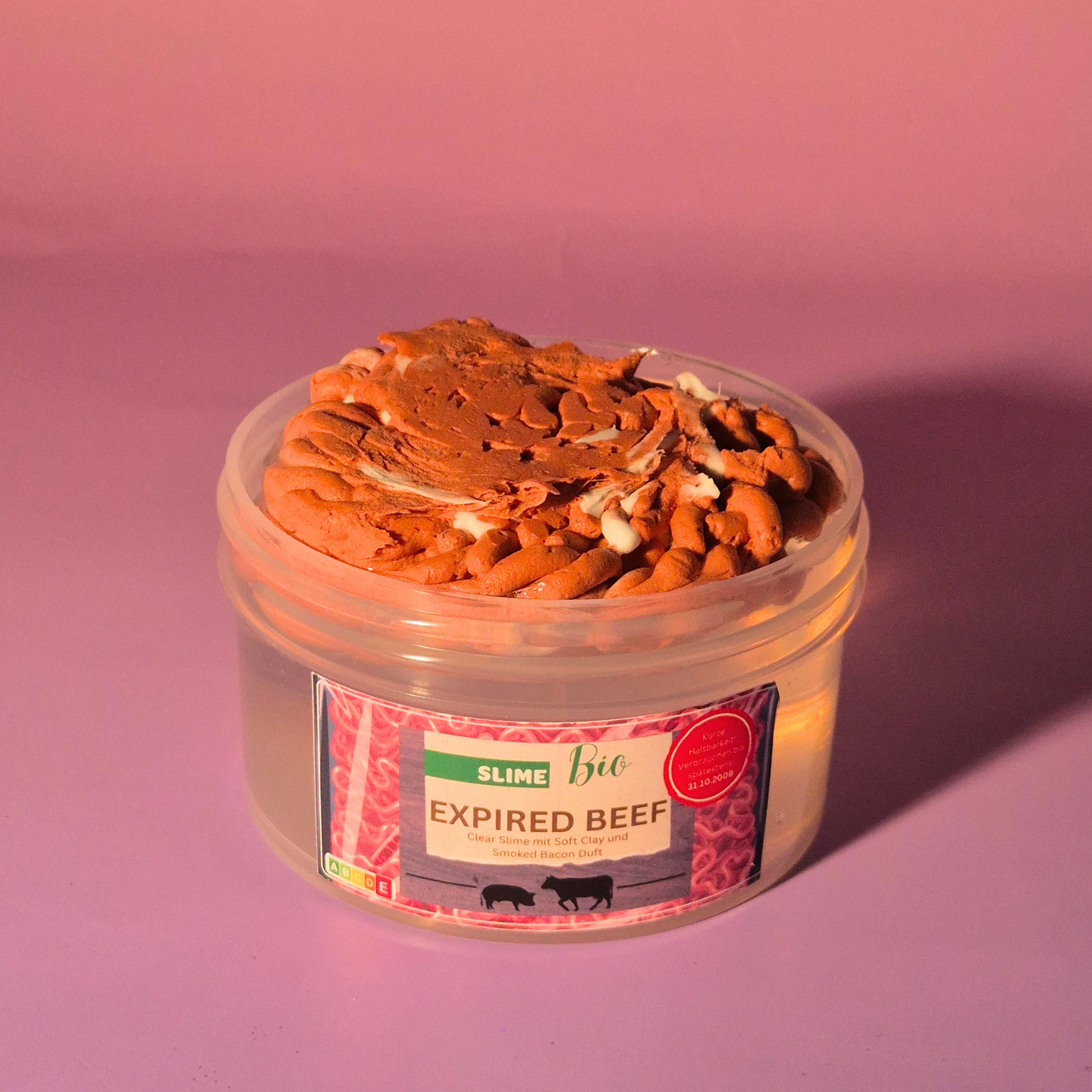 Schockierend realistisch & absolut einzigartig – Expired Beef ist der wohl außergewöhnlichste Slime deiner Sammlung! Ein klarer, glänzender Clear Slime trifft auf soften roten Clay, der aussieht wie rohes Hackfleisch – aber natürlich komplett aus Slime besteht.