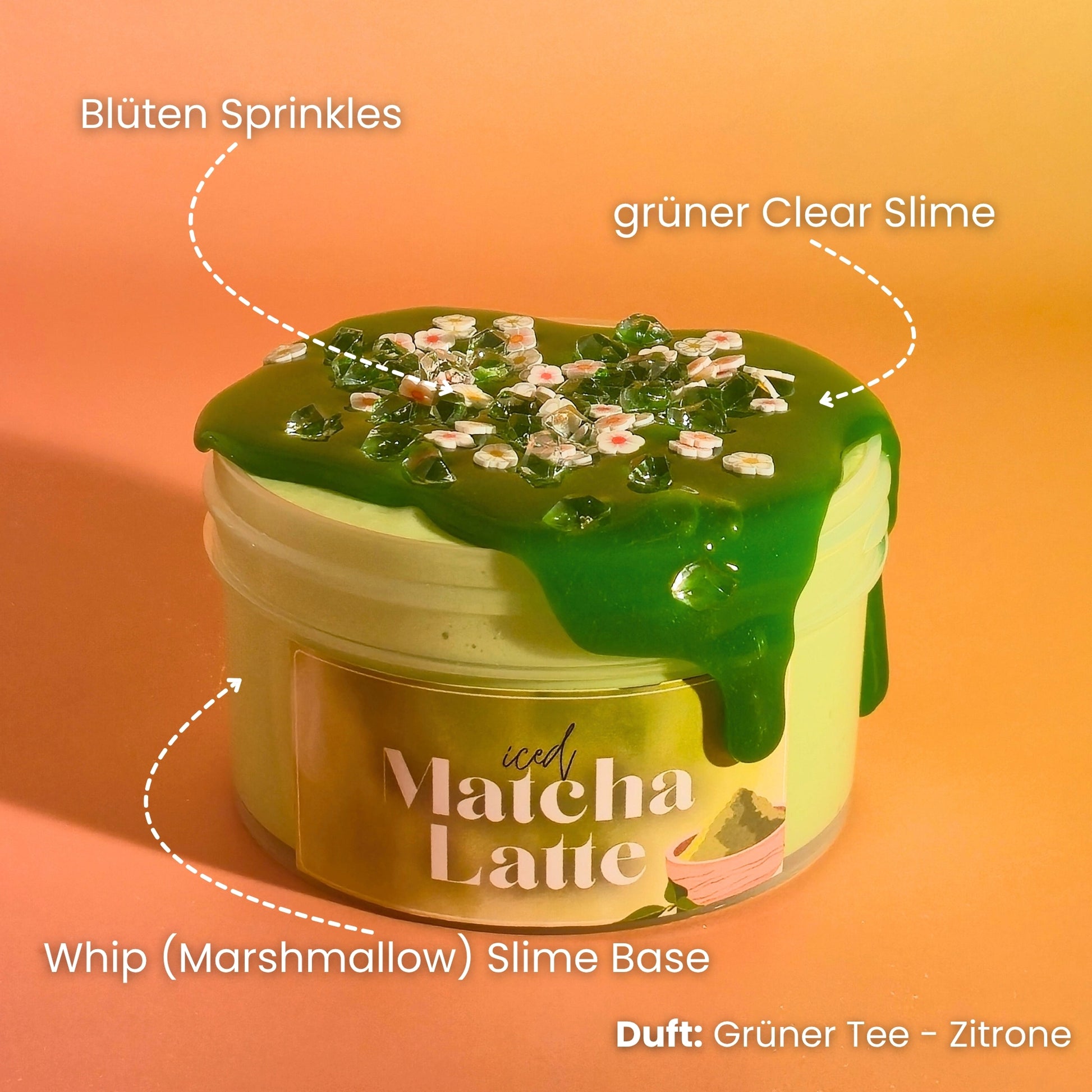 Frisch, cremig und super satisfying – wie dein Lieblingsdrink von der Matcha-Bar! Iced Matcha Latte verbindet eine buttrig-fluffige-weiche Base mit einer transparenten Matcha-Sirup-Schicht zu einem einzigartigen Slime-Erlebnis für alle Sinne.