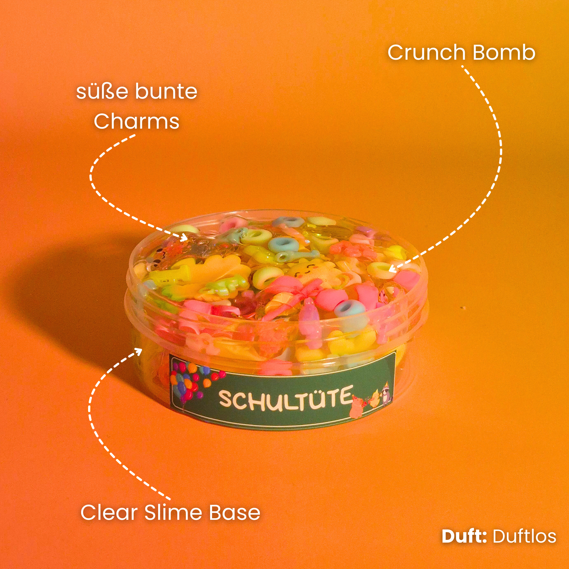 Knackig, bunt & voller Spaß – Schultüte bringt dir das aufregende Gefühl des ersten Schultags direkt als Slime verpackt. Der klare, crunchy Slime ist gefüllt mit einer bunten Mischung aus Perlen und Deko, die bei jedem Drücken herrlich knistern.