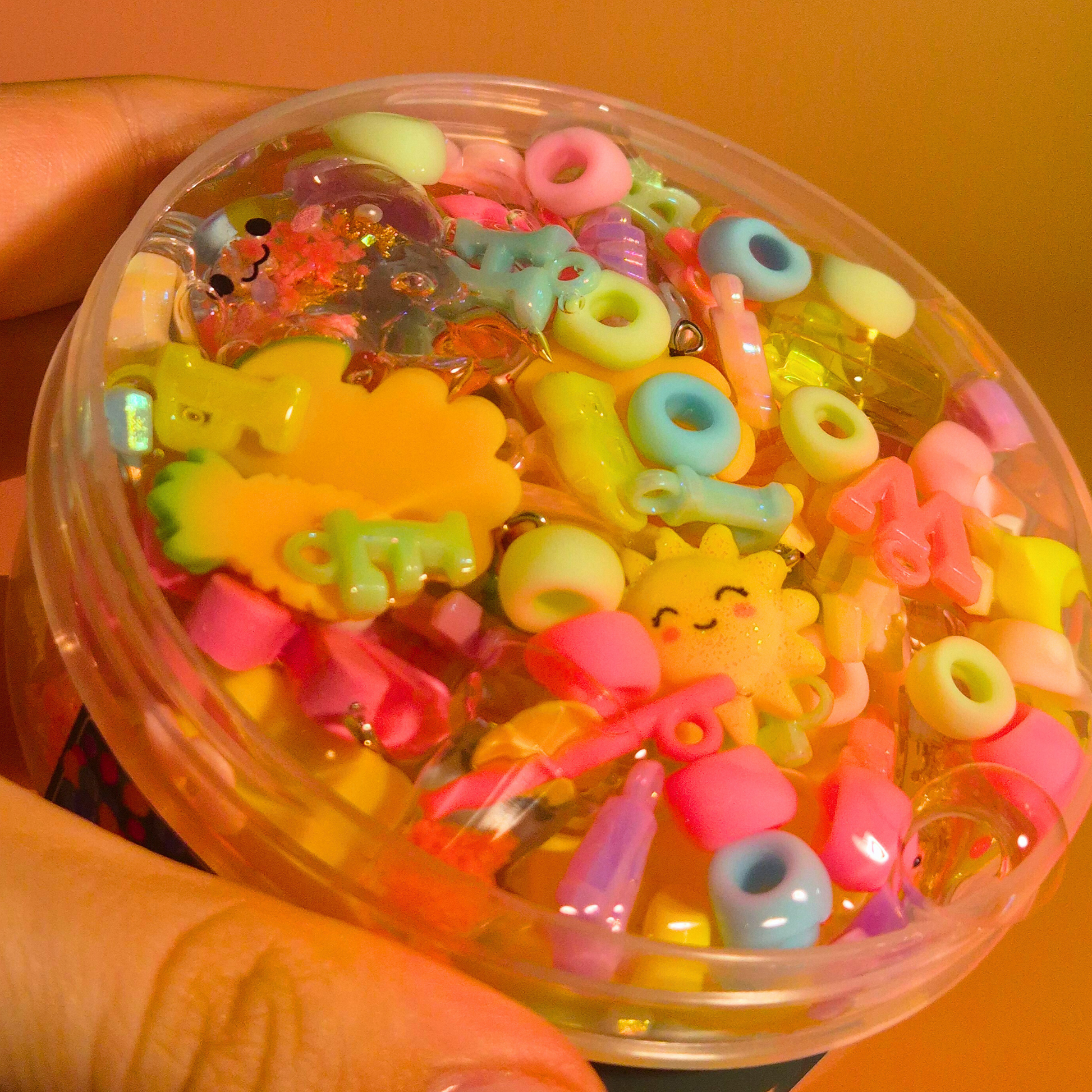 🎨 Farbenfrohe Optik: Die bunten Elemente im klaren Slime erinnern an eine frisch gefüllte Schultüte – fröhlich, verspielt und einfach ein Hingucker.