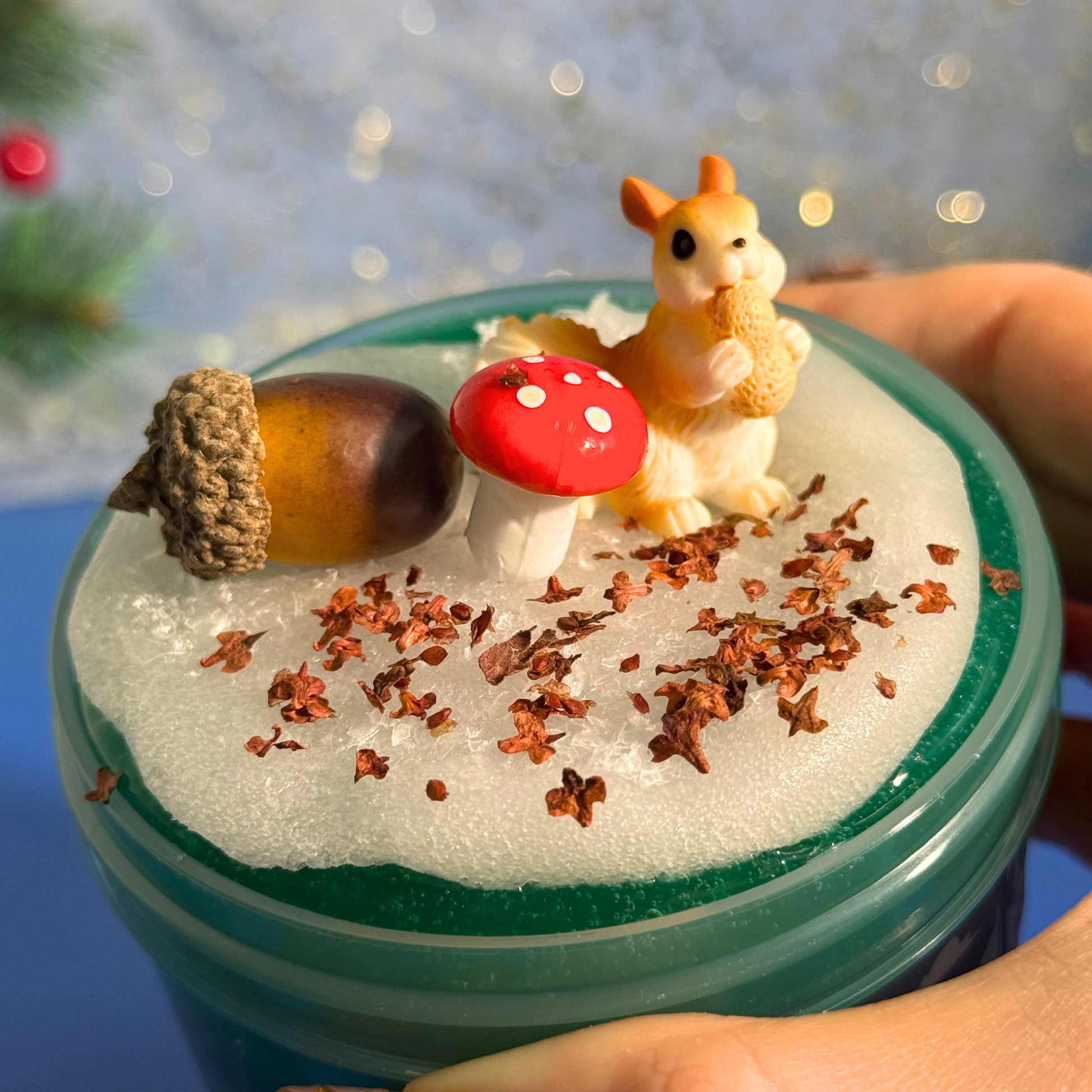 Details: Eichhörnchen-Charm, Pilz, Nussdeko & winterliche Streudeko + Icee Slime Topper mit Kunstschnee zum selbst dekorieren